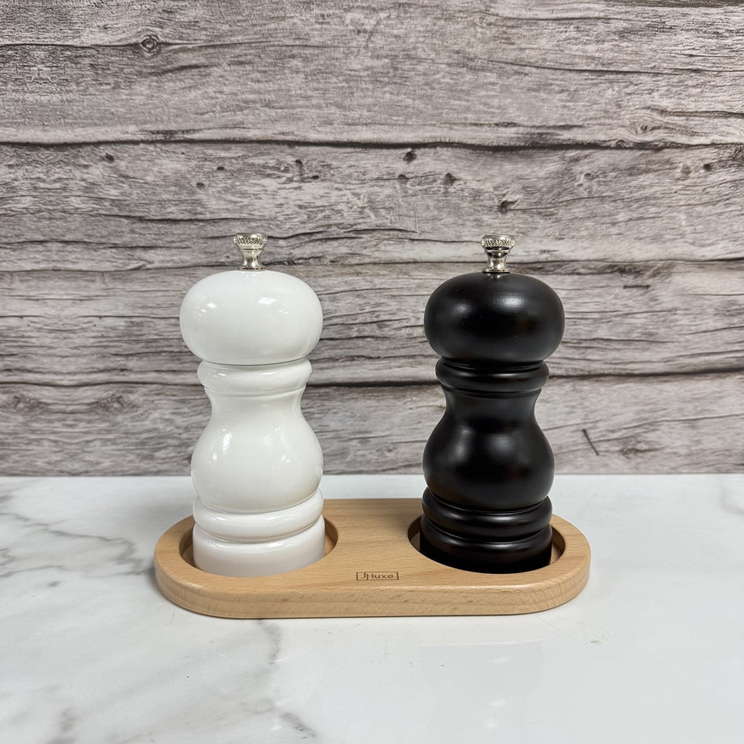Designed to keep your space tidy, our wooden tray not only holds salt and pepper grinders but also collects any residues from the mills, ensuring a clean and organized surface. Its compact design and stylish look make it a sophisticated addition to any room.